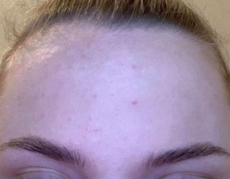 "Jeg begyndte pludselig at få en masse knopper og bumser, primært i panden. Jeg tænkte at det nok ville gå væk af sig selv, men som månederne gik, så det kun ud til at blive ved og blive værre